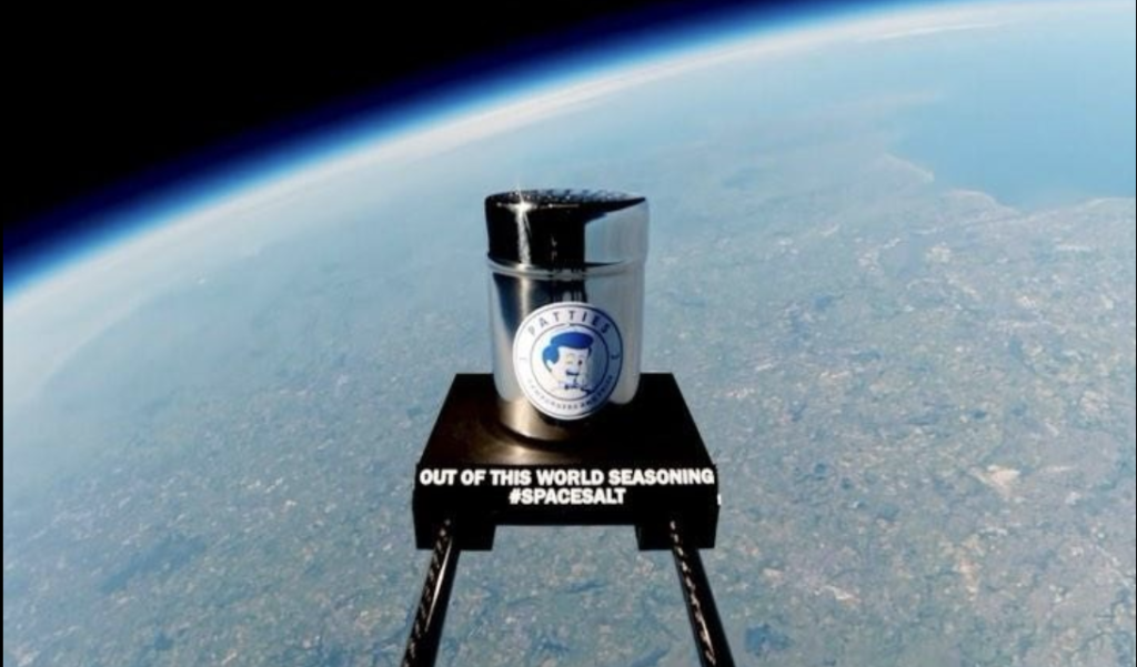 A rede de hamburguerias anunciou através de suas redes sociais que investiu cerca de R$300 mil para levar 9kg de sal para a órbita terrestre e, na volta, produzir cerca de 3 mil hamburgueres vendidos na rede. A ideia foi do administrador Henrique Azeredo, sócio e CEO da empresa, que diz que há tempos pensava em ‘algo realmente grande’, que poderia diferenciar a empresa das demais 3 mil hamburguerias existentes na cidade.